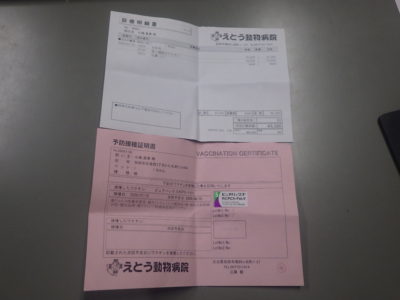 財布の中の領収書と予防接種証明書だけです。