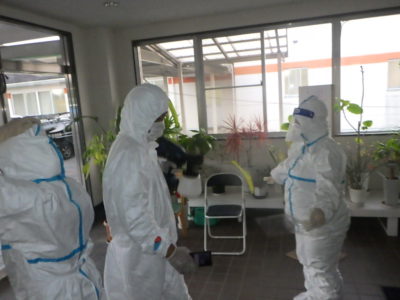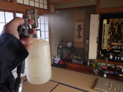 その為、屋内にはULV消毒(薬剤噴霧)を