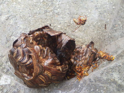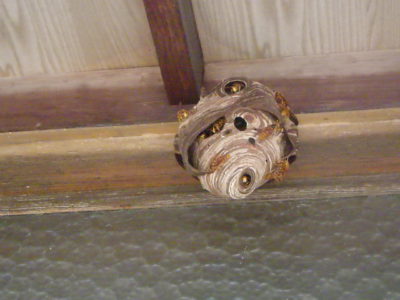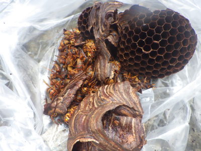 その後巣を奇麗に剥がしてなおかつ忌避剤を吹き付けます。