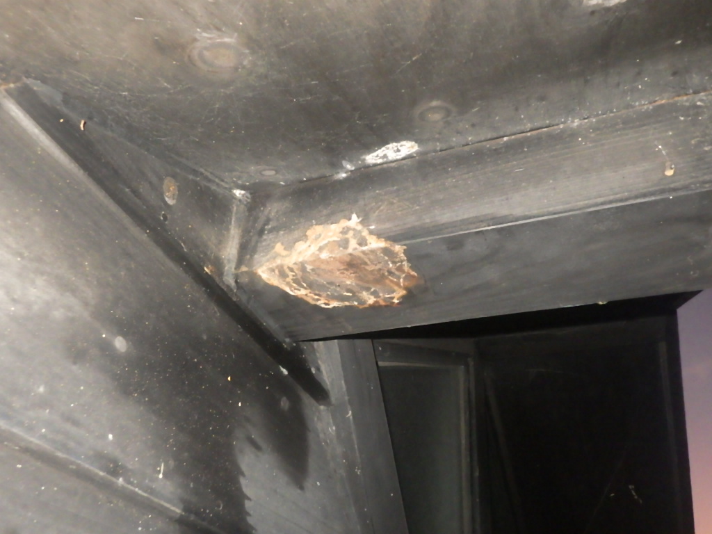 巣の場所は二階軒下で下から見ると