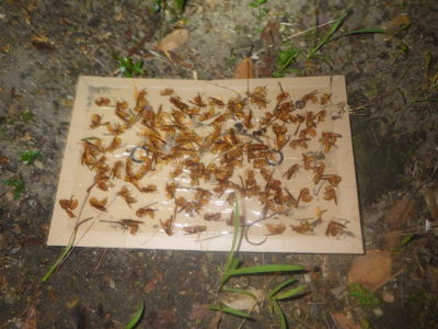 どうにか戻りバチが収まったので薬剤で駆除したハチを拾って