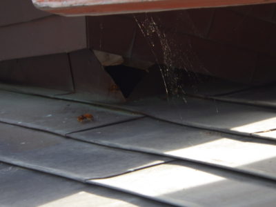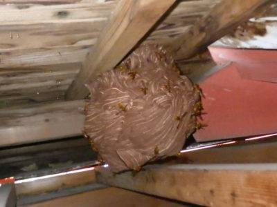 ほんま狭い軒裏にキイロスズメバチの巣が!!