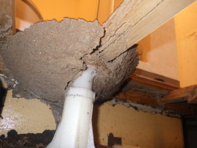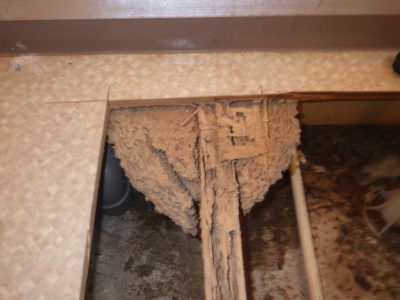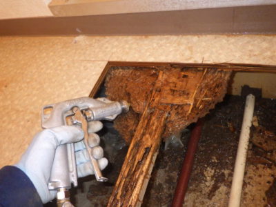 駆除施工を行い、最後にコロニーに薬剤を吹き付け