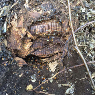 その後蜂の出入りが収まってきたら土を掘り巣を回収します。