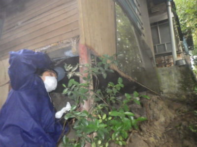閉塞しました。雨の中での作業と傾斜の強い現場の為
