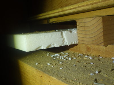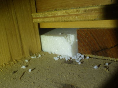 断熱材の角を齧っていました。