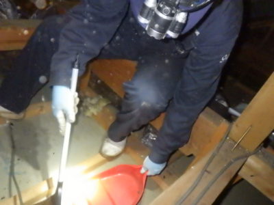 殺菌消毒で終了です。単純な作業ですが天井裏の