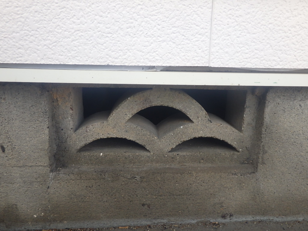 床下換気口に換気網を取り付けをおこなって