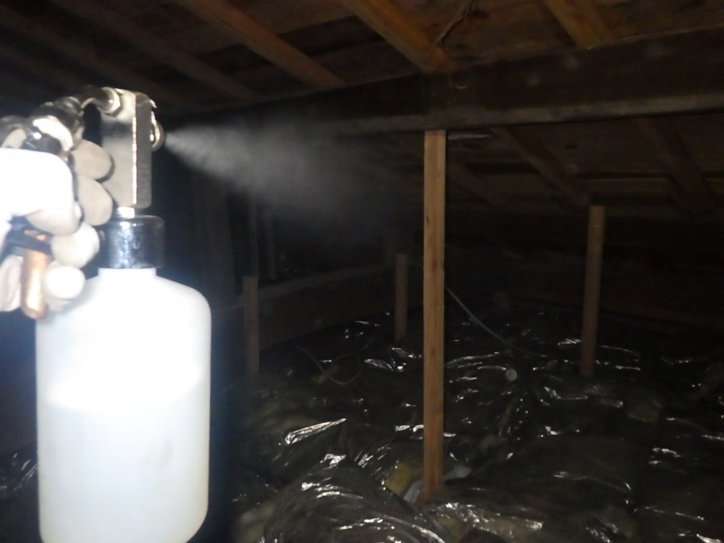 清掃後は、天井裏に薬剤を使用し空間噴霧を