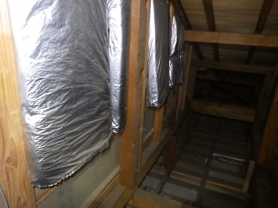 天井裏に上がり辺りを見回しますと断熱材が