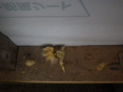 荒らされて落ちていました断熱材の繊維も