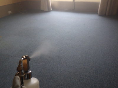 床が絨毯の為、空間噴霧処理で害虫の繁殖などを抑えていきます。