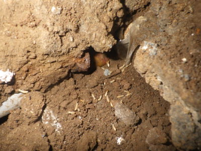 蟻道を少し壊すと多数の個体が落ちてきました。