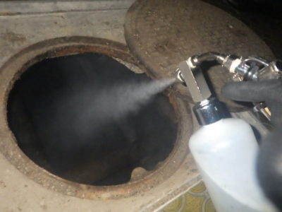 今週の現場ですがマンホール内の消毒をさせ