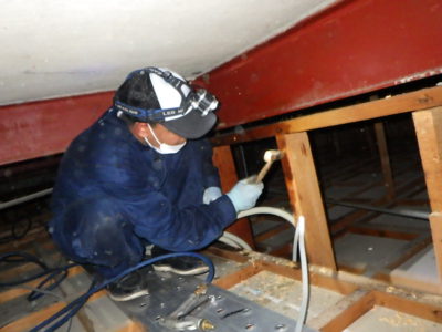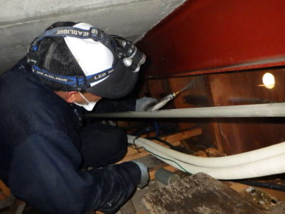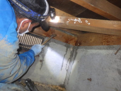 建物の上から下まで薬剤処理が必要でハードな現場になりましたが