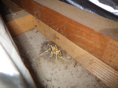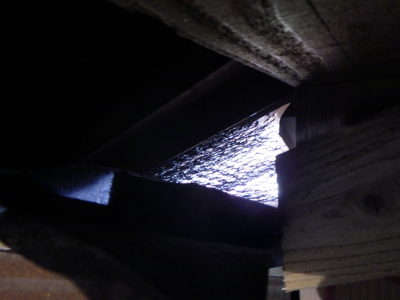 侵入した足跡や食した後の野鳥等の羽が落ちて