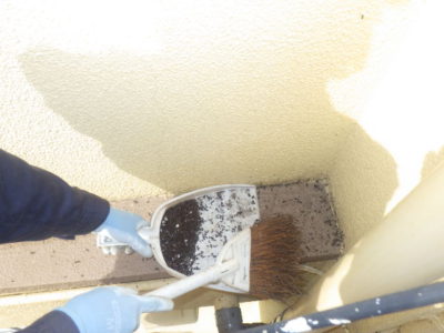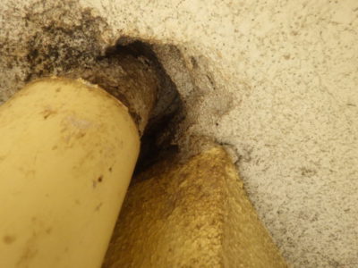 埋込の雨樋パイプに対して軒天井のクンクリートを