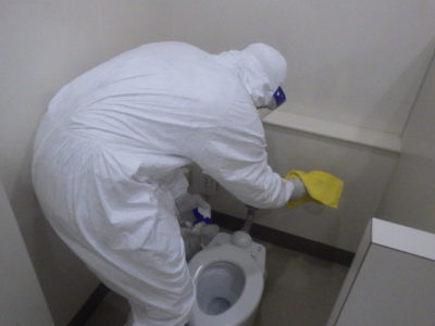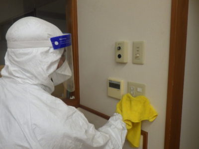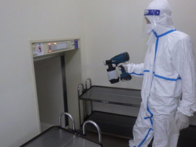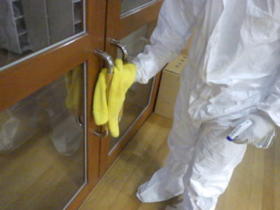 日東防疫の消毒では空間噴霧処理とアルコールを用いて拭き上げを