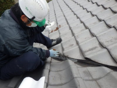 瓦の隙間が多く空いている現場で人数かけて入っております。