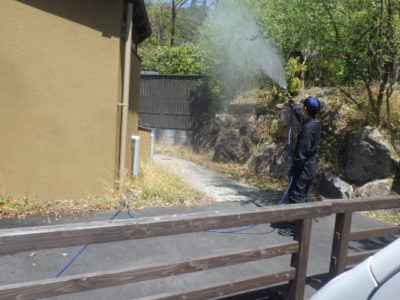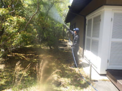 気温が上がってきてムカデや飛翔昆虫が増えてきて外周りの殺虫消毒の