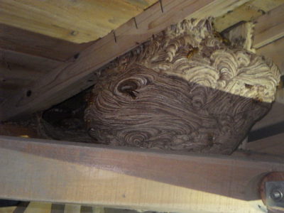 ハチ駆除中に着る防護服はサウナ―スーツ!!