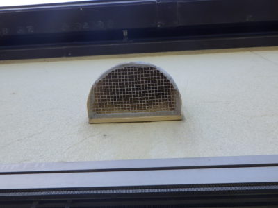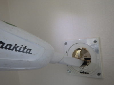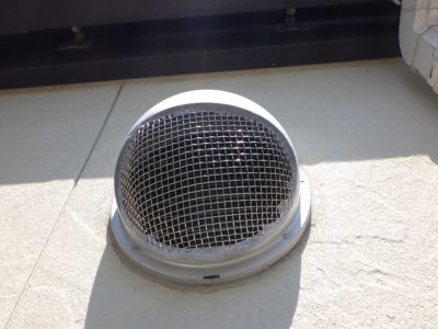 屋内での施工工程が終われば外壁換気ダクト開口部に