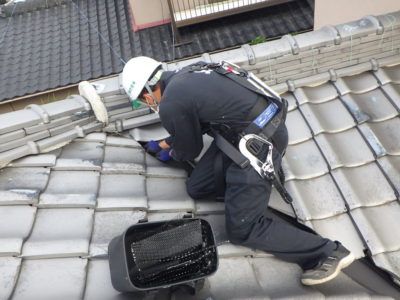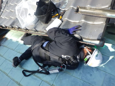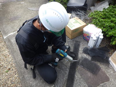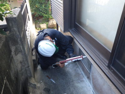 別府市石垣、イタチ侵入防除施工をチームワークで!!