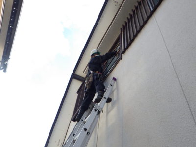 高所作業車を使用できない現場でしたので2段梯子を
