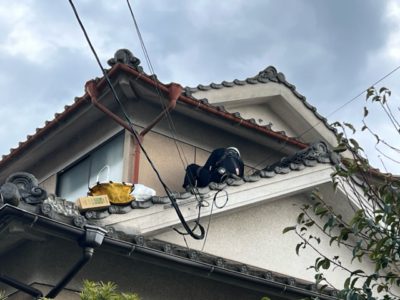 切った網を屋根の上で作業している隊長へ渡して、私は床下の換気口の閉塞へ