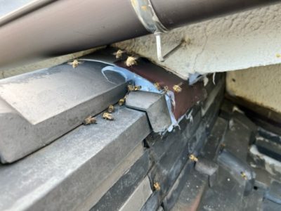 お伺いすると、ミツバチが天井裏に出たり入ったり…