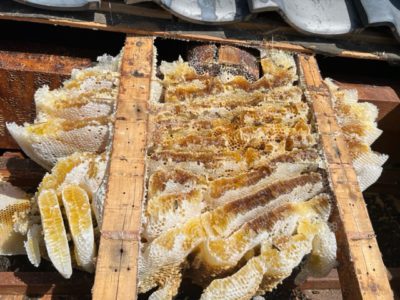 蜜でベタベタになりながら、施主さんからコーヒーもいただき無事終了。