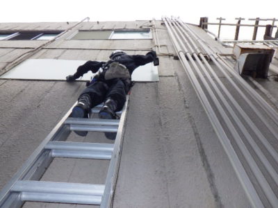 入れず2段梯子で工事をする事に…