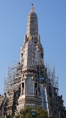 …しかし、長いワット・アルンの歴史の中で、ある意味レアな足場を架設して改修工事中のお姿。