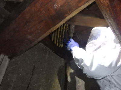 まさか天井裏で防護服を着る羽目になるとは…