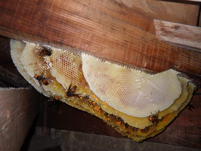 ミツバチの巣を撤去しております。