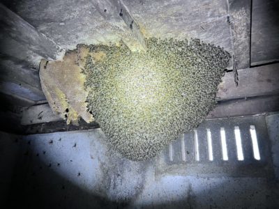 床下からブンブンなのでミツバチかなと思っていたのですが、調査してみてやっぱりミツバチでした!