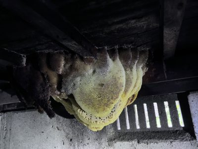 さて、先週は国東市安岐町にお住まいのご夫婦のご自宅床下からブンブンと羽音がするとのことでしたので、調査にお伺いしました。