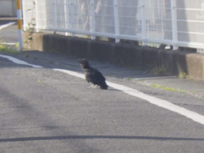 ハシブトカラスの雛はピョンピョン跳ねながら