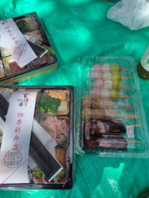 先日、友人達とお花見に行ってきました(^-^)マストアイテム花見弁当と団子。