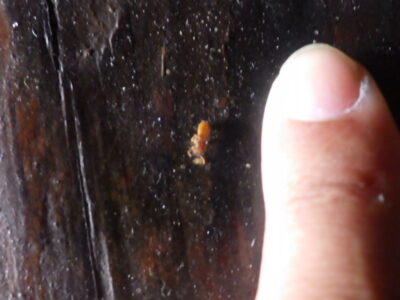 冊子の隙間や床下に侵入したニンフが畳の縁の