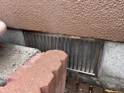 現場を確認すると床下の換気口からスズメバチが出たり入ったりしているのが確認出来ました。