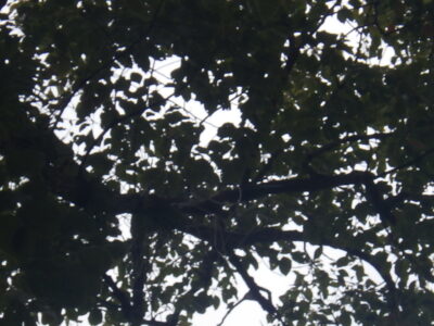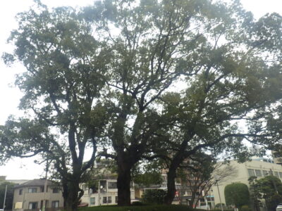 すると鳴きながらカラスが樟の上の方へ停滞し、