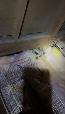 さて、宇佐市の一般住宅にて、天井裏のアライグマ対策のため捕獲器を設置。