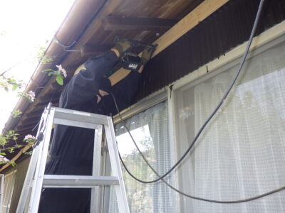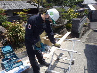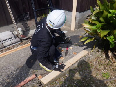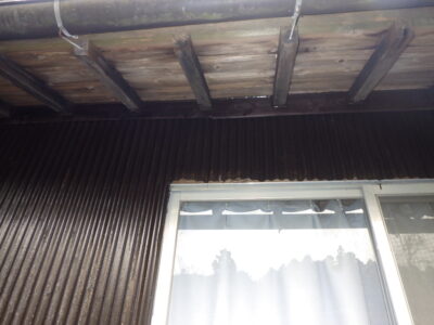 ほとんどの軒が開いていた為、軒下に長い平材を