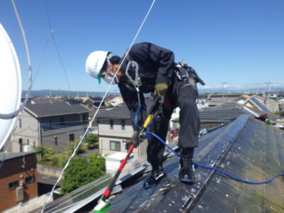 施工の2日目で防鳥ネットの取り付けになります。