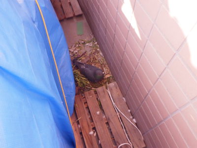 今回の現場は、ベランダの鳩網施工の現場でした。