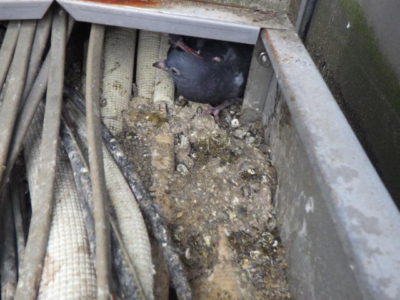 束周りのコンクリートに腹を擦ってできた跡や糞も落ちていました。
