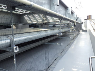 別府市内ホテル、ゼネコン現場にて防鳥ネット取付。