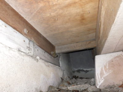 下から覗きますと床下に侵入し、壁内を登って中天井裏へ
