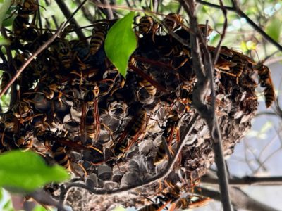 かなり大きく個体数も多く、大変でしたが無事に巣も取れました。